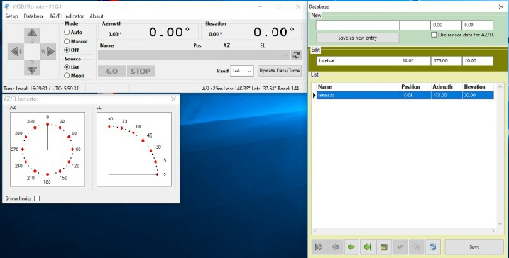 He has made an excellent job of it and I like the ability to add items in a database. The maximum and minimum azimuth and elevation values may also be setup up and this is easier than accessing the menu items in the hardware. I also like the clockface indicators for azimuth and elevation and the ini file setup.