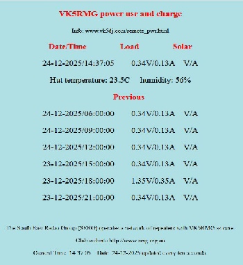 With ideas from the “Geoffg.net” Watering system controller project featured in August 2023 Silicon Chip Magazine I have created a wifi server that allows remote monitoring of the voltage and current of both the loads and the solar charger at The Bluff, site of VK5RMG. This repeater system is the centre of the South East Radio Group’s repeater network covering the Lower South East of South Australia and into SW Victoria.
